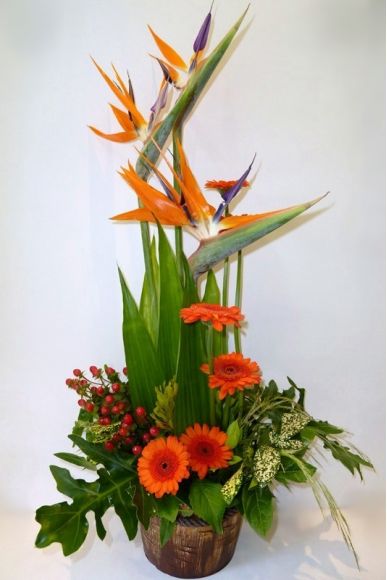 Ανθοσύνθεση με στερλίτσιες σε υπέροχο χειροποίητο κεραμικό κασπώ.