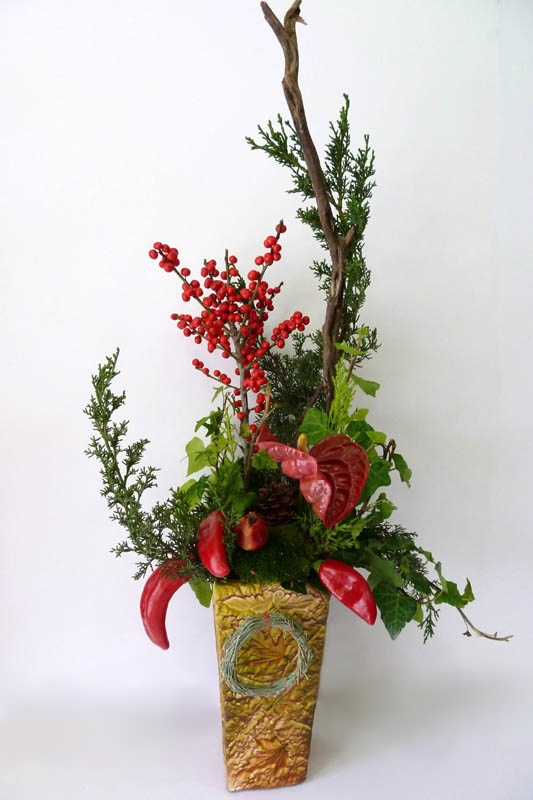 Όμορφη σύνθεση σε ασύμμετρη χειροποίητη κεραμική βάση